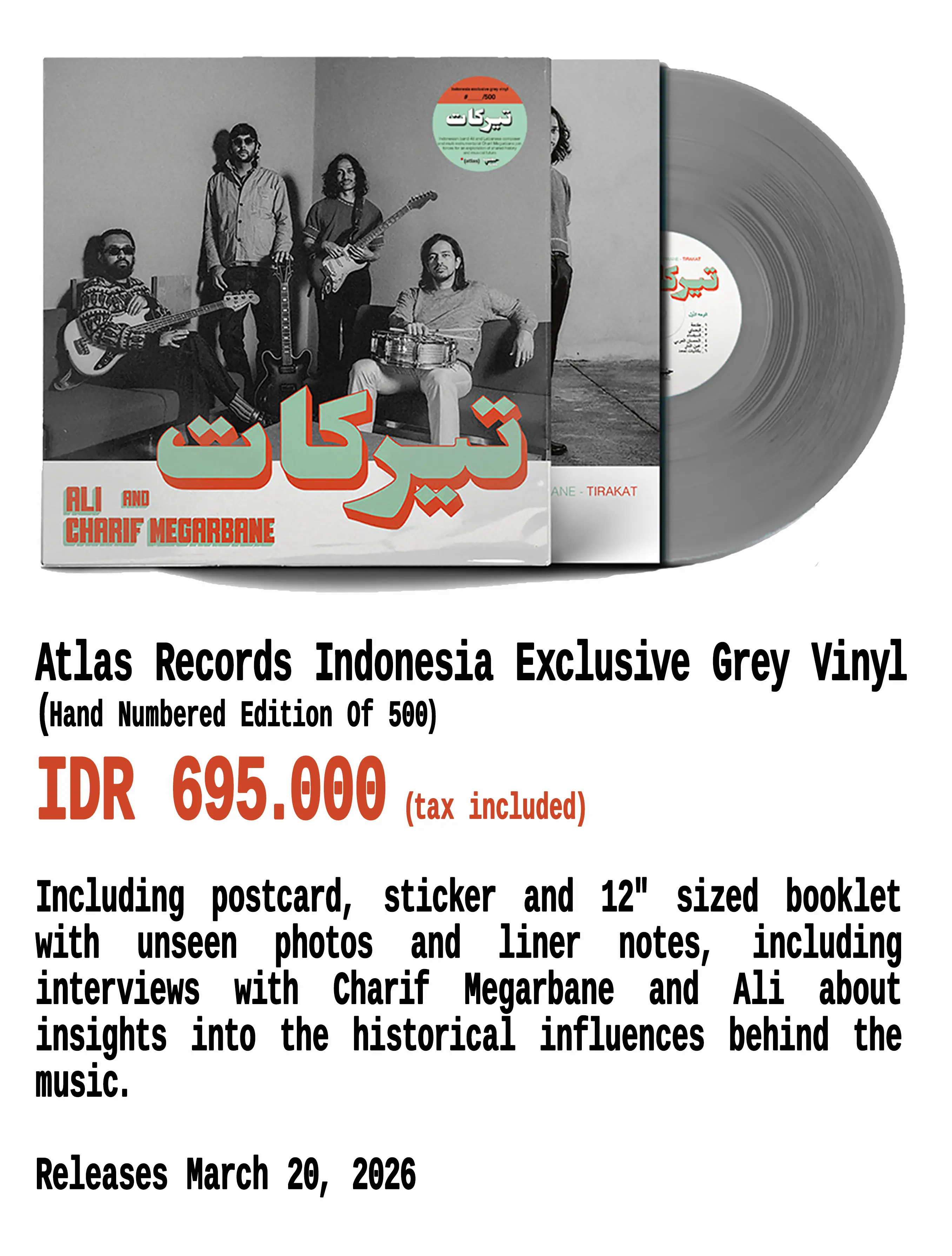 Tirakat brings together Jakarta-based trio Ali and Lebanese composer and multi-instrumentalist Charif Megarbane in a collaboration shaped by long-standing cultural exchange between Indonesia and the Arab world. Ali’s blend of 1970s Indonesian psychedelic funk, Melayu traditions, disco grooves and Arab melodic forms meets Charif’s long-running exploration of cross-regional sound, rooted in a shared musical vocabulary rather than genre.